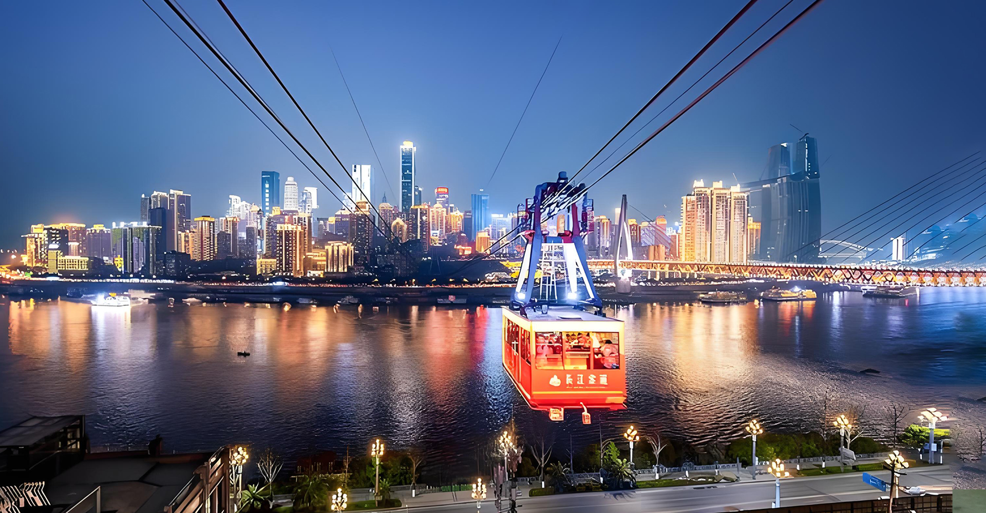長(zhǎng)江索道:重慶市級(jí)文物保護(hù)單位,北起渝中區(qū)新華路,跨長(zhǎng)江至南岸區(qū)龍門浩上新街,是繼嘉陵江客運(yùn)索道建成營(yíng)運(yùn)成功之后,又興建的萬(wàn)里長(zhǎng)江空中第一走廊。索道于1986年3月20日動(dòng)工興建,1987年10月24日竣工通車。工程總投資1450萬(wàn)元,占地面積5188m2,總建筑面積7397m2。索道全長(zhǎng)1166米,車廂定員65+1人,車速0.3—10米/秒,設(shè)計(jì)客運(yùn)量3萬(wàn)人(次)/日;2013年12月被評(píng)為國(guó)家級(jí)3A級(jí)風(fēng)景區(qū),2017年旅游人次突破400萬(wàn)人次,2018年1月被評(píng)為國(guó)家級(jí)4A級(jí)景區(qū),2019年旅游人次突破500萬(wàn)人次
